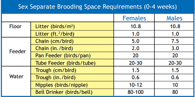 تراکم جایگذاری باید با توجه به شرایط محیطی و اقلیم محلی و نوع تجهیزات استفاده شده تعیین شود. باید فضای بیشتری نسبت به ماده ها برای نرها در نظر گرفت تا به اهداف وزنی مطلوب خود برسند.